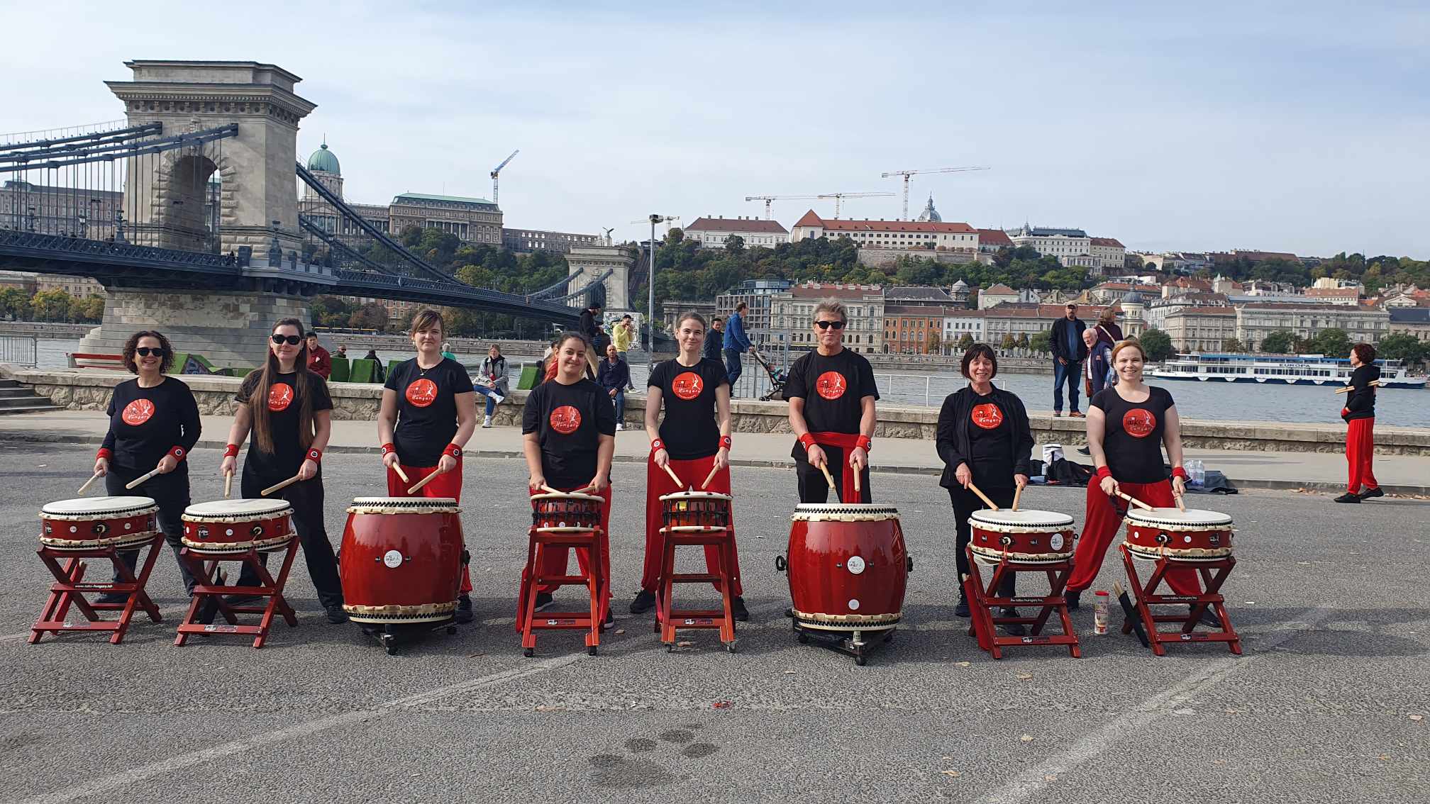 Biztató dobpergés a 40. SPAR maraton futóinak, a Lánchíd melletti pesti alsó rakparton